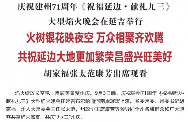 您的当前位置:智慧体育首页 > 看资讯 > 民生新闻 > 庆祝建州71周年《祝福延边•献礼九三》大型焰火晚会在延吉举行