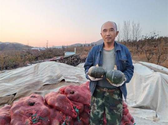 今年57岁的孙吉新是村里土生土长的朴实农民,一辈子踏踏实实地在土里刨食。家里上有85岁的老父亲,下有俩娃,一个上大学、一个上高中,一家人的全部开销,都靠那点儿地来维持。今年,在种地的同时,想着挣点儿零花钱,孙吉新和老伴尝试着种了2公顷南瓜。可谁承想,眼瞅着瓜熟蒂落、喜获丰收了,烦心事儿也随之而来,1万多斤南瓜找不到销路。