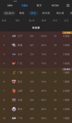 您的当前位置:智慧体育首页 > 看资讯 > 新闻资讯 > CBA第一阶段成绩:辽宁9连胜保持不败 新疆跃居第二
