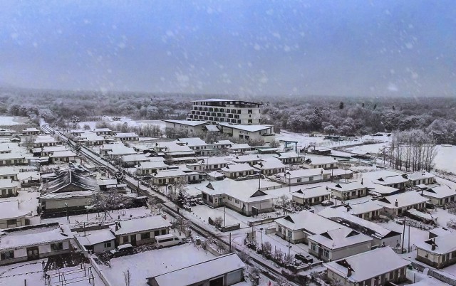 长白天下雪,吉美在延边。随着冬季的到来,我州各景区积极备战今年冬季旅游市场,争取再创冰雪旅游新高峰。有着“长白山下第一村”之称的安图县二道白河镇奶头山景区以其独特的地理优势率先进入“冰雪模式”,悠悠白雪为古朴静谧的山村带来了无穷魅力,成为游客寻幽探秘的首选地。图为白雪中的奶头山村。
