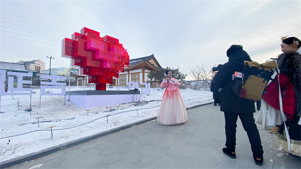 “延吉今天-20℃,终于体会到了冰天雪地的感觉。希望未来有更多的台湾朋友可以跟我一起来到延吉,体验这边的民族特色,感受不一样的风景。”身穿朝鲜族民族服装的林芯泽沉浸在美景之中,对明天的乡村振兴探访之旅也更加期待。