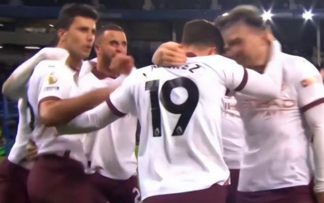 果不其然,下半场开始后不久,福登就远射破门,为球队扳平比分。之后阿尔瓦雷斯主罚点球,为球队反超比分。