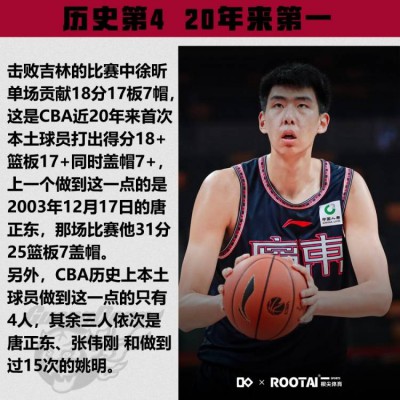 中国篮协技战术服务平台“普罗篮球”分析道:“今晚18+17+7的徐昕,是CBA最近20年以来第一个拿到这个数据的本土球员,上一次打出这个数据的还是2003年的唐正东,而CBA历史上,一共也只有4名本土球员做到过单场至少18+17+7。其中姚明做到过15次。”