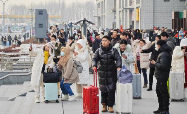 2023年12月30日,元旦假期第一天,延吉西站迎来大量游客。图为延吉西站出站人流。