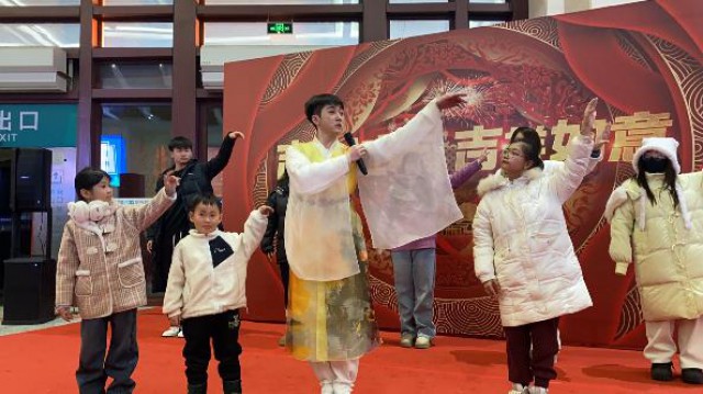 1月18日,延边歌舞团在延吉西站候车大厅举行城市营销宣传活动,在表演精彩节目的同时,与游客亲密互动。图为延边歌舞团舞蹈演员邀请游客一同表演民族舞蹈,游客们踊跃参与,乐在其中。