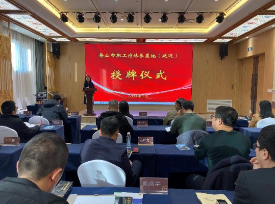1月24日,由州总工会组织召开的职工疗休养交流研讨座谈会暨授牌仪式在龙井市琵岩山温泉古村落举行。会上,为我州5家职工疗休养基地授牌“舟山市职工疗休养基地”。浙江省舟山市人大常委会副主任、总工会主席王飞跃,州人大常委会副主任、总工会主席王秋菊出席活动。