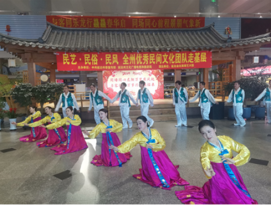 延吉机场运输服务部“七彩缘”专员与延边金达莱颂艺术团等单位联合开展了“与客同乐”民俗文化宣传活动,让旅客“沉浸式”参与充满“民艺、民俗、民风”的文化盛宴,在欢声笑语中共庆新春佳节。活动内容丰富,《延边人民热爱毛主席》《欢迎你到延边来》《我的家乡在延边》等节目亮点频现。30余名演员用精湛的才艺表达了延边人民昂扬向上的精神风貌。