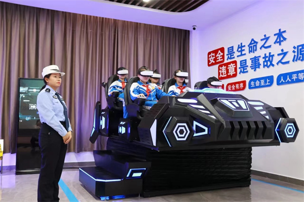 该基地设有汽车安全驾驶碰撞体验区、行人闯红灯体验区、VR典型交通事故体验区等,将交通安全知识以“实景+科技”的方式融入互动体验中。活动现场,宣讲民警以“教学+互动体验”的方式,向学生们传授交通安全常识。在汽车安全驾驶碰撞体验区,通过现场体验让学生们感受到安全带的重要作用以及安全带就是生命带的深刻含义;酒醉驾体验区让大家真实地感受到酒精对人的视觉、触觉、行走能力的实际影响;VR典型交通事故体验和VR侧翻体验让师生们“身临其境”地感受到交通陋习带来的危害,警示大家在出行时,一定要杜绝侥幸心理,遵守交通法规。在行人闯红灯体验区,大家体验了红绿灯模拟装置,当看到自己因闯红灯通过、模拟行人被撞的画面时,现场所有人都表示再也不敢闯红灯了。师生们在宣讲民警的指导下,还进行了VR步行、VR骑行体验,通过寓教于乐的方式更好地了解安全出行需要注意的细节,更深刻、直观地感受交通安全的重要性,并掌握了如何防范交通安全风险,做到“知危险、会避险”。