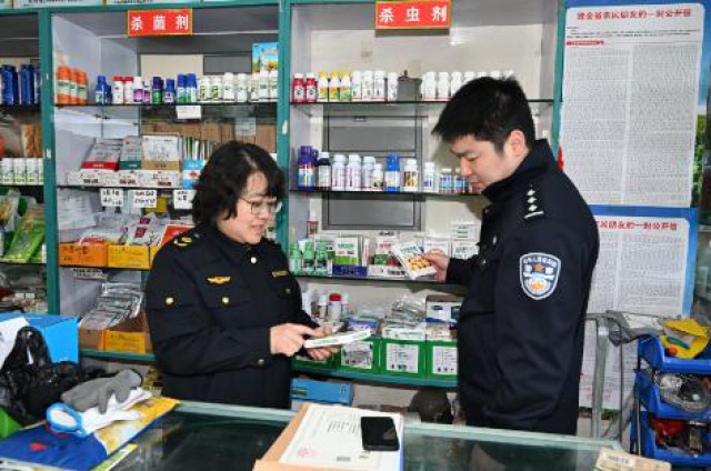 为切实维护广大农民和消费者的合法权益,确保春季农资市场经营秩序,严厉打击农资领域各种违法行为,3月22日,延吉市农业局、公安局、市场监督管理局联合对种子、农药、肥料、兽药、饲料等80余家经营单位进行重点检查,对不符合法定资质条件的无证经营者依法予以清理。图为联检工作人员进行检查。