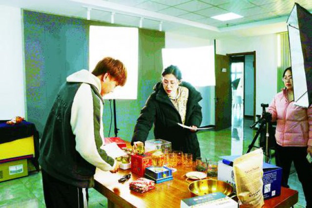 珲春东北亚跨境电商产业园于2022年8月交付使用,成为集商品展销、创业孵化、金融结算、仓储物流等功能于一体的综合服务平台,建有商品展销中心、网红直播基地、共享创客空间、智能共享云仓、电商孵化中心等功能区。自园区投入使用以来,累计吸引百余家电商相关企业入驻。图为日前在珲春东北亚跨境电商产业园的网红直播基地里,主播为推介各类特色商品研究制定直播方案。