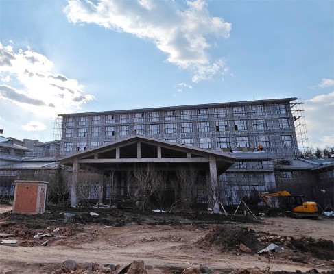 总投资5.95亿元,总面积5.6万平方米的延吉市观唐温泉酒店,是集温泉、餐饮、客房、会议、娱乐于一体的一站式度假中心项目,预计今年5月投入运营。图为项目现场。
