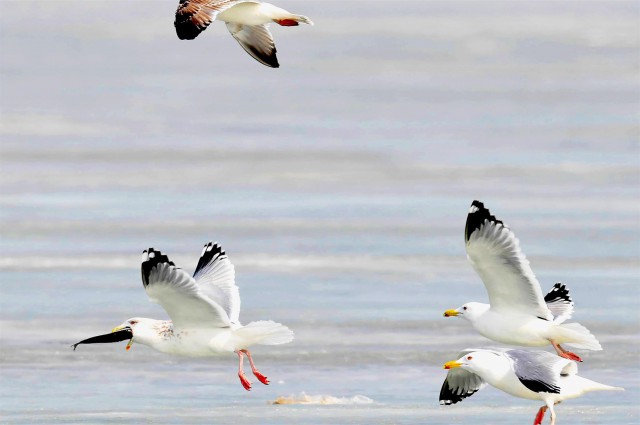 3月份以来,珲春敬信湿地迎来了最佳观鸟季。在珲春敬信湿地的龙山湖面上,候鸟如精灵般浮在水面,时而觅食,时而休憩。图为成群结队的候鸟抵达“五星驿站”珲春敬信湿地龙山湖。