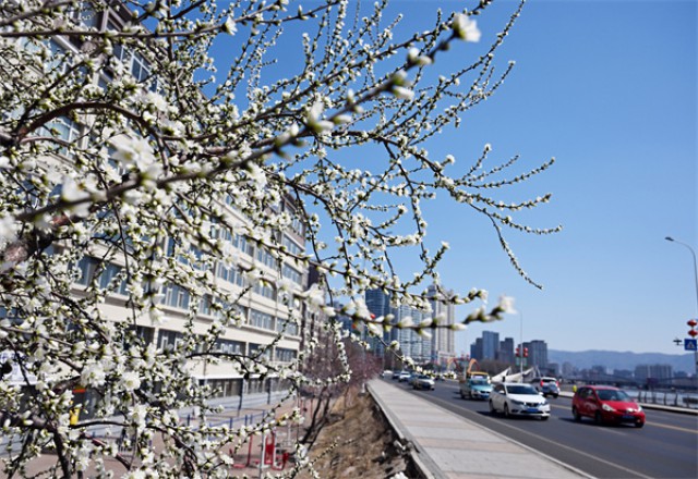 4月的延吉,春风拂面,生机盎然,又到了一年花开的季节。4月9日,在延吉市延河路、长白山西路上,一团团、一簇簇粉白色的桃花迸发在枝头。有的吐蕊盛放,有的含苞枝头,一阵春风拂过,鼻腔里充满了春的气息。