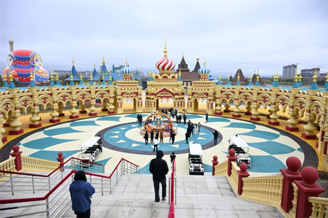 门外广场上的套娃咖啡、帆船喷泉,将街景装扮一新,代入感极强。走进入口,记者即被眼前富丽堂皇的装饰惊艳到,在这处集游玩、餐饮、演艺、购物于一体的综合性主题乐园里,俄罗斯的休闲娱乐文化体现得淋漓尽致。