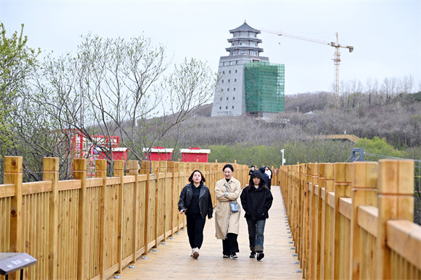 在防川景区龙虎阁脚下,踏上全长2221米的中俄朝三国边境木栈道,记者提前探访了8个主题区和2个娱乐区。一路上,空气沁人心脾,树木抽出新绿,三国风光尽收眼底,让人心旷神怡。