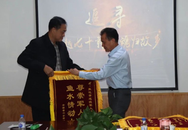 “你们的热心相助,帮我们烈属了却了一桩多年的心愿,真是太感谢了……”5月22日,来自安徽省六安市的烈士亲属江开寿一家向敦化市退役军人事务局赠送了一面写有“尊崇军人敬英烈 鱼水情动大别山”的锦旗,感谢该局在为他和亲属前往敦化祭扫过程中提供的便利与帮助。