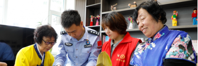 为铸牢中华民族共同体意识,图们出入境边防检查站以多种形式开展警民互动活动,促进各民族交往交流交融,维护边疆和谐稳定。图为图们出入境边防检查站民警日前组织居民一起包粽子。