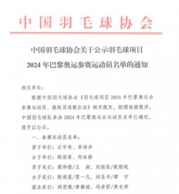 近日,中国羽毛球协会发布了关于公示羽毛球项目2024年巴黎奥运参赛运动员名单的通知,共有16名运动员分别在5个单项上获得了巴黎奥运会参赛资格,其中,佛山运动员陈清晨将搭档贾一凡征战女双项目。