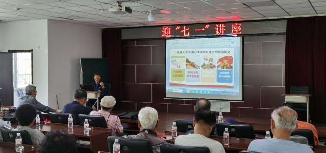 6月27日,州商务局离退休党支部组织党员在龙井市老干部活动中心开展迎“七一”主题党日活动。图为延边大学崔厚泽教授为党员们讲解铸牢中华民族共同体意识的重大意义与重点任务。