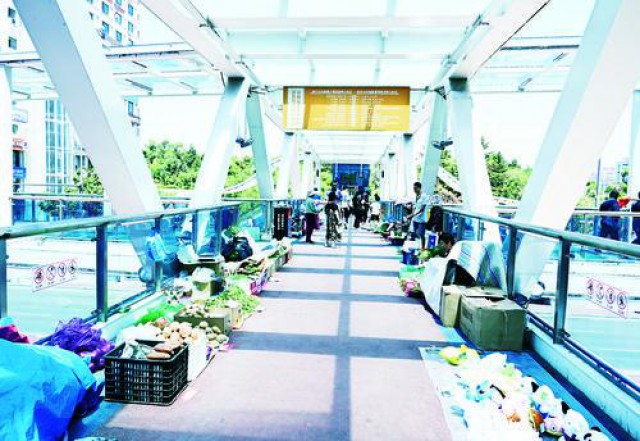 创建文明城市,人人有责。近日,记者在位于延吉市人民公园的横跨南北的过街天桥上发现,一些商贩在此摆摊售货,影响城市市容,希望有关部门及时疏导解决,还市民一个美丽舒适的交通环境。