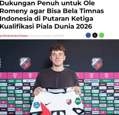 北京时间7月6日,印尼媒体《BOLA》报道称,印尼足协正在寻找新的归化球员来出战9月份开赛的18强赛。其中在锋线位置上,效力于荷甲乌德勒支俱乐部的奥莱-罗梅尼是热门人选。