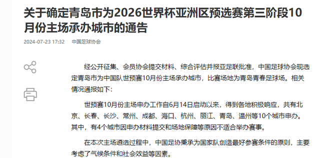 7月24日报道,中国足协已经官方公布,选定青岛作为世预赛18强赛中国VS印度尼西亚比赛的主场,这一决定令对手十分头疼。