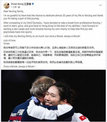 8月6日消息,巴黎奥运会女子重剑金牌得主、中国香港选手江旻憓4日在社交平台上公开宣布退役,将向新的职业发展。