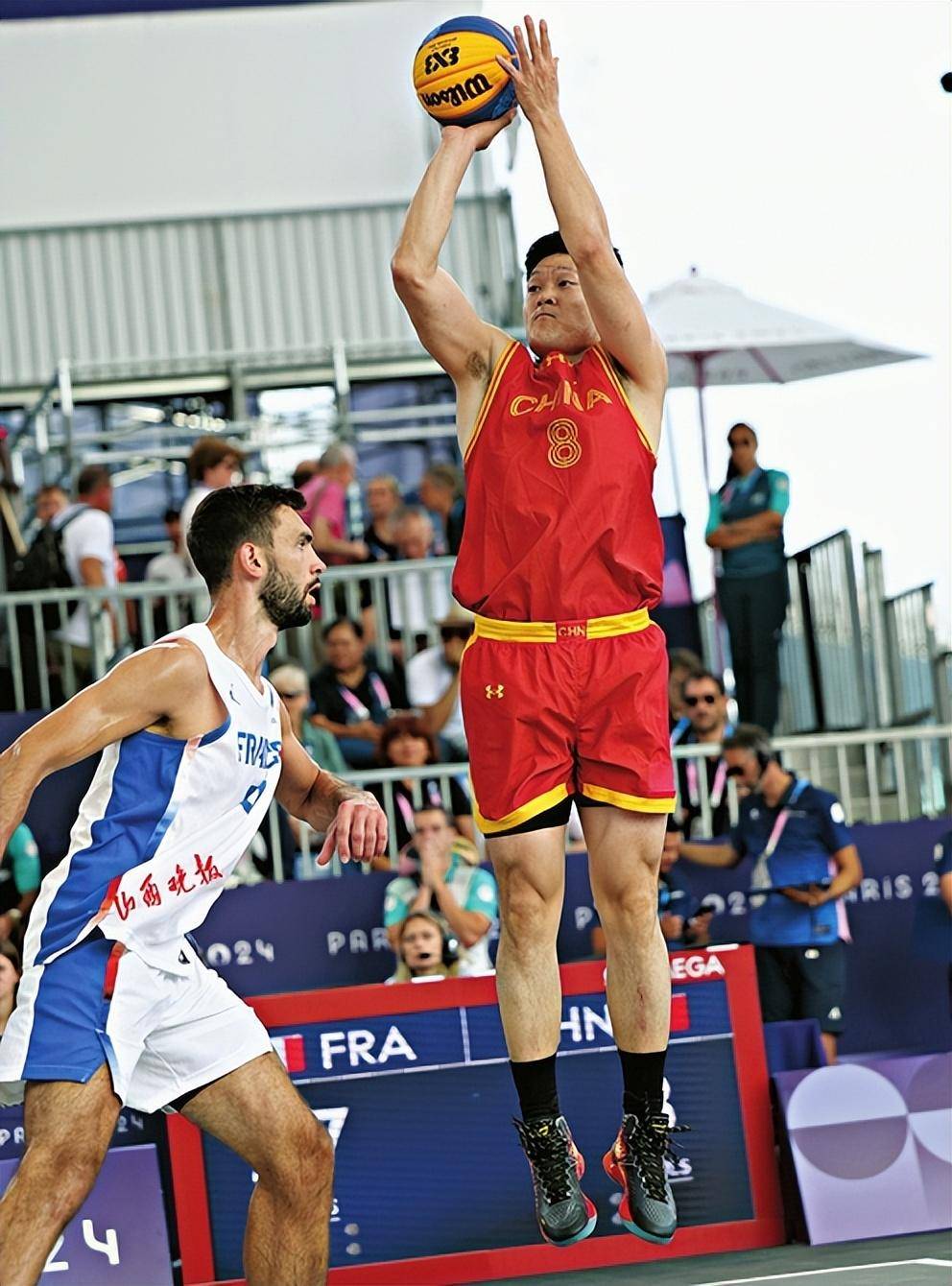 在三人篮球男子组循环赛最后一轮比赛中,中国队对阵东道主法国队,张宁依旧身穿8号球衣亮相,为中国队拼完最后一程。