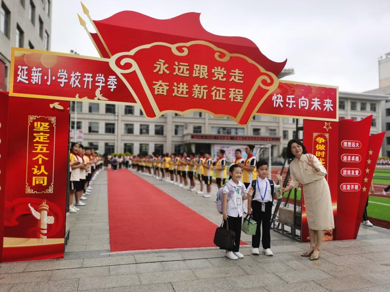 当日8时许,记者在延吉市延新小学校看到,该校校长李顺福和大队辅导员金春姬早早地守候在校门口,热情迎接学生们的到来。高年级的学哥学姐们化身“氛围组”,用唱歌跳舞、击掌鼓励、热情拥抱,“花式”欢迎新同学。红石榴志愿岗的小小志愿者们忙得不亦乐乎,一一接过一年级新生携带的学习用品,带领他们找到自己的班级。