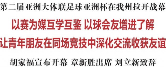 驰骋绿茵赛场,展现青春风采。9月17日,第二届亚洲大体联足球亚洲杯在我州的龙井市海兰江足球文化产业园开幕。省委常委、州委书记胡家福出席开幕式并宣布本届比赛开幕。教育部原副部长、亚洲大学生体育联合会荣誉主席章新胜出席开幕式。亚洲大学生体育联合会主席、中国学生体育联合会主席兼秘书长刘立新出席开幕式并致辞。