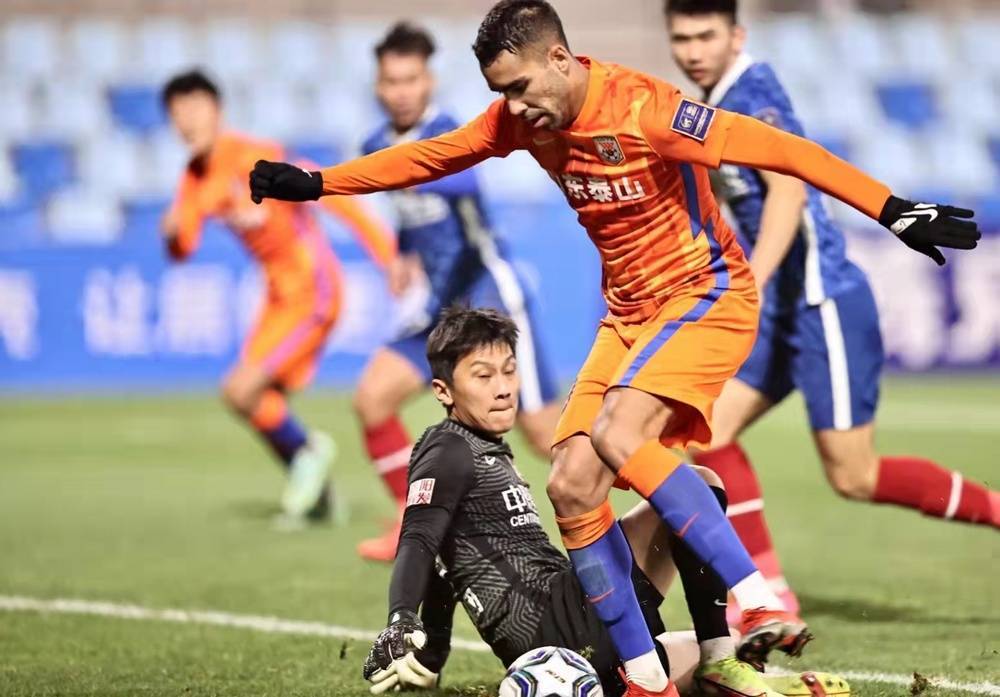 在这一背景下,崔康熙在首发球员的选择上更加重视防守。马塞尔、石柯、刘洋、吴兴涵、王大雷组成的后防线接近球队主力配置。德尔加多、何小珂、买乌郎等球员搭配的进攻线则与球队的最佳配置有一定距离。也正因此,上半场泰山队并没有太多优势可言,反倒是深圳新鹏城获得了数次进攻良机,戴伟浚的打门曾击中立柱。