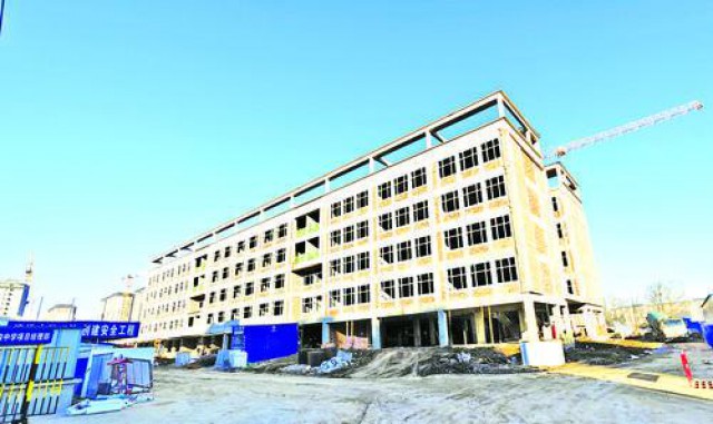 延吉市第四中学华盛校区建设项目占地34989平方米,总建筑面积21747.24平方米,其中地上建筑面积19028.9平方米、地下建筑面积2718.34平方米,主要包括教学楼、综合楼、换热站、门卫、操场及其他附属建筑。目前,教学楼主体施工完毕,后续工程正在施工中,预计2025年7月竣工。