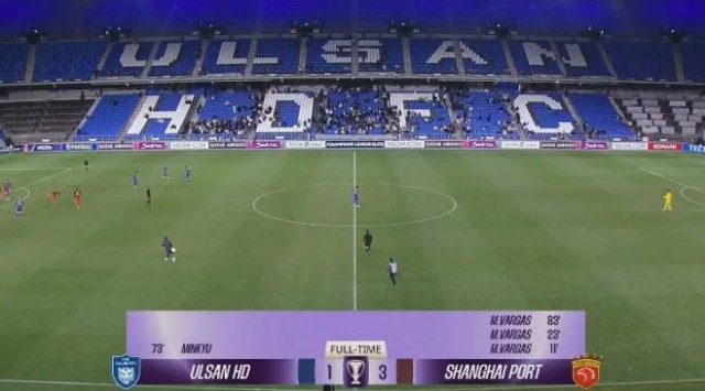 在少一人的情况下,海港队踢得极为艰难。几乎被对手压着在踢,而蔚山队的持续进攻在第73分钟收到了效果,他们利用一次角球的机会,将球顶入到了球网,1:2,蔚山队折回一球,这个球也是这支球队在亚冠的首个进球。不过,虽然场面被动,但上海海港队有奥斯卡的巴尔加斯。第83分钟,奥斯卡做球,巴尔加斯后场启动带球长驱直入单挑防线,面对一直后退的金英权选择直接远射轰出世界波上演帽子戏法,奥斯卡也是助攻戴帽,海港3-1客场领先,而这个比分也最终保持到了终场,上海海港队艰难收获了一场客场胜利。这样,在亚冠积分榜上,海港7分重新回到晋级区,蔚山、中央海岸水手1场不胜。