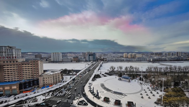 12月2日,延吉市迎来今冬第一场雪,大地披上银装,为城市增添了冬日的魅力。 延边日报全媒体记者 陈延龙 摄