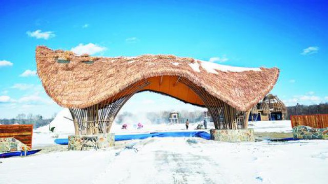 入冬以来,我州“冰雪热”不断升温,呈现一派欣欣向荣的冬季旅游发展新景象。安图县奶头山村投入300余万元打造冰雪乐园项目,并升级了雪上娱乐项目,采购100余台雪地摩托车,为游客提供更好的玩冰戏雪新体验。 图为别具一格的冰雪乐园入口。