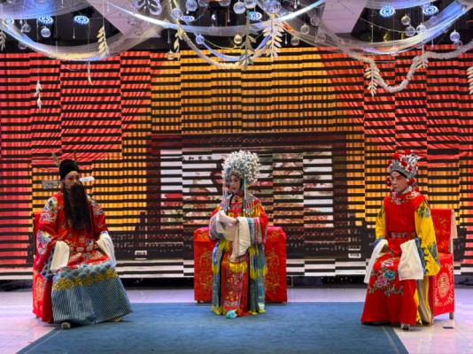 近日,延边京剧协会举办成立三十周年京剧演唱会,旨在弘扬京剧艺术,让更多人了解、喜爱京剧,为广大票友提供交流和展示的机会。图为延边京剧协会演员表演传统京剧《状元媒》。