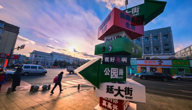 为扩大网红城市影响力,丰富城市内涵,打造精品城市文化,延吉市不断向内挖掘旅游发展潜力,打造祖国东北边陲精品小城。图为延吉市一处别具一格的街口新路标。