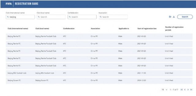 北京时间12月21日消息,国际足联注册禁令披露系统昨晚公布新增北京国安一条禁令,禁令为无限期直至案件解决。在解决前北京国安将不能操作国际国内转会,以及注册新球员。