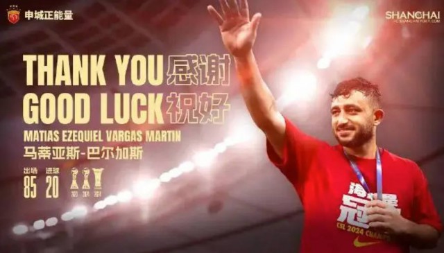 经与球员本人友好协商并达成一致,阿根廷球员马蒂亚斯·巴尔加斯正式离队。俱乐部充分尊重、支持球员对其职业生涯的全新规划,同时对球员表示衷心的感谢与祝福。