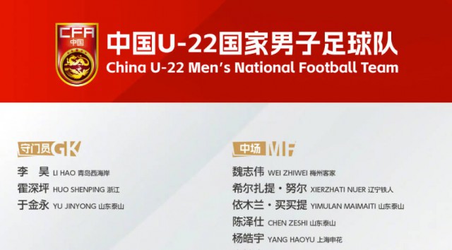 您的当前位置:智慧体育首页 > 看资讯 > 新闻资讯 > U22国足名单:依木兰蒯纪闻入选 多名国青主力在列