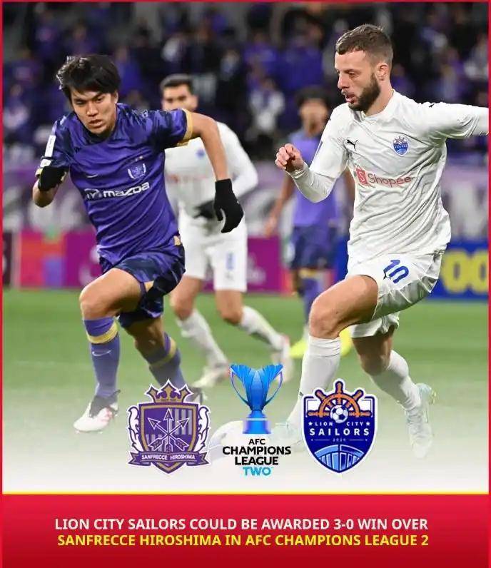 在亚冠第二级别联赛1/4决赛首回合中,广岛三箭以6-1大胜新加坡狮城水手,但赛后亚足联判定其违规使用球员,改判比赛结果为0-3负。