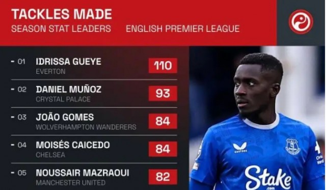 本赛季英超成功抢断榜: