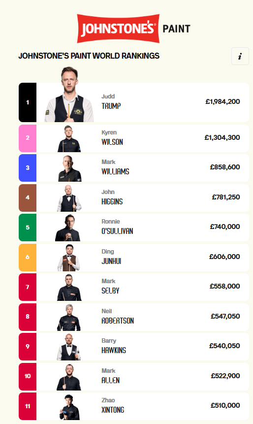 北京时间5月7日消息,昨日,世界斯诺克WST官网更新了世界锦标赛结束后的世界排名(即赛季末排名),刚刚夺得世锦赛冠军的28岁中国选手赵心童排在第11位。