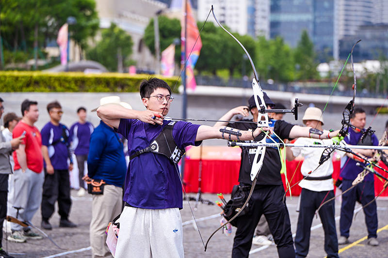 人民网上海5月25日电 继5月17日“浦工·活力赛”职工射箭个人赛在上海国际旅游度假区梦享音乐谷收官后,5月25日,由浦东新区总工会主办、陆家嘴街道总工会承办的2025年浦东工会“兴业证券杯”职工射箭团体赛决赛在黄浦江东岸滨江举行。