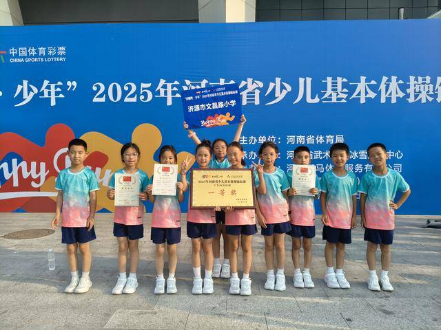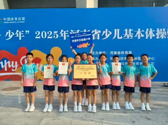 6月11日,在2025河南省少儿基本体操锦标赛中,济源市文昌路小学代表队凭借精湛的绳操技艺和默契配合,从全省多支参赛队伍中脱颖而出,喜获一等奖,小选手们用跃动的绳影与活力的身姿书写了属于文昌学子的荣耀篇章。