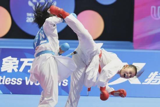在一声声的“雄起”加油声中,中国空手道运动员龚莉给自己职业生涯添上新的一笔。在8月9日进行的成都世运会空手道女子组手61公斤级决赛中,龚莉以5∶1击败日本队选手岛田佐良良,赢得金牌。