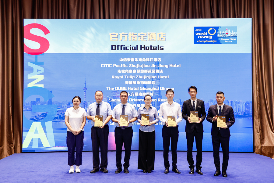对照世界赛艇联合会的标准与要求,赛事组委会经过严格筛选,最终确定青浦区11家酒店承担官方接待任务,其中八家负责接待各参赛队伍,两家作为媒体酒店,另有一家专供技术官员使用。活动现场,11家酒店被授予官方指定酒店铭牌。