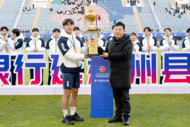 在随后举行的颁奖仪式上,胡家福为延吉市代表队颁发了冠军奖杯;延边足球名宿金光柱、张延矛、白胜虎,延边龙鼎足球队主教练李基珩、延边龙鼎足球队领队许波、延边州球迷协会会长高元哲,分别颁发了亚军季军奖杯、优秀赛区奖、最佳射手奖、公平竞赛奖、优秀球迷组织奖。接过沉甸甸的奖杯,运动员们难掩激动、振臂庆祝,看台上掌声不断、呐喊如潮,欢呼声汇聚成一片沸腾的欢乐海洋,将现场氛围推向高潮。