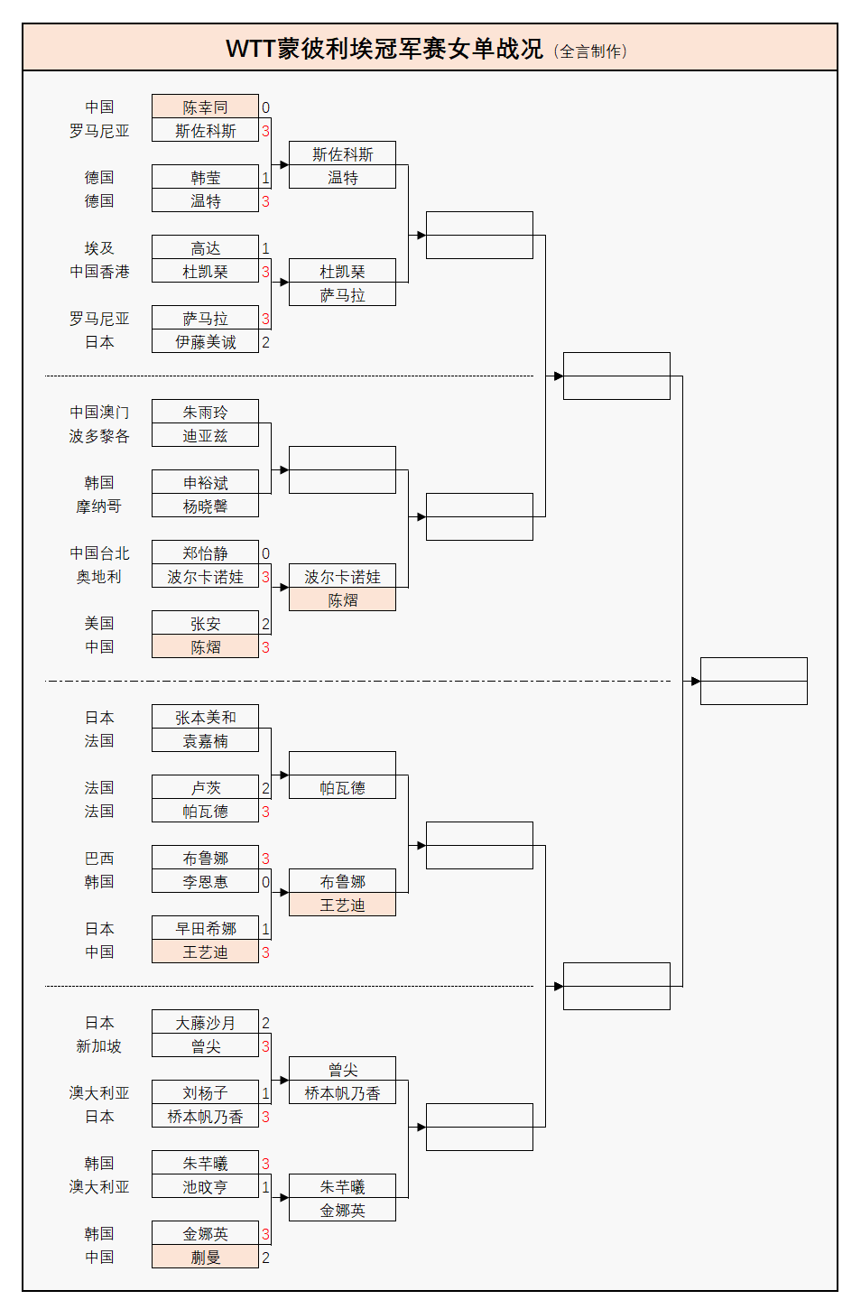 王艺迪3-1早田希娜(日本);