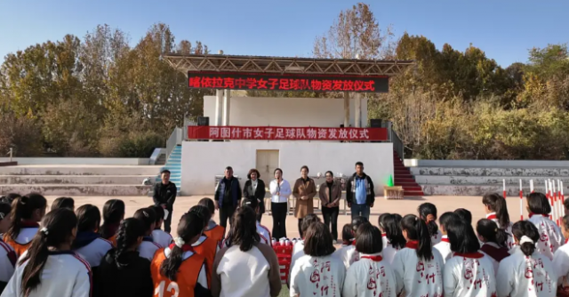 10月30日,阿图什市上阿图什镇喀依拉克中学的操场上满是欢笑,一场充满爱与希望的物资发放仪式在此温馨举行。阿图什市妇联带着对女子足球队的深切关怀,为上阿图什镇博斯坦小学队、喀依拉克中学足球队的姑娘们,送上了总价值3万元的 “足球大礼包”,包括65套量身定制的比赛服、30双专业足球鞋,以及训练标志盘、敏捷梯、训练背心等多种实用足球训练设备,用坚实的物质保障为女孩们的足球梦想保驾护航。